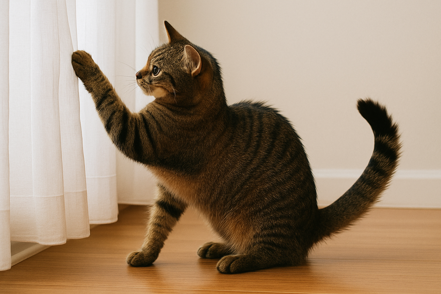 Zit hij in de vensterbank en zwiepen de laatste centimeters heen en weer naar de andere kant? Dan is hij gefocust op een vogel of passerende prikkel. Bied veilig jachtspeelgoed als uitlaatklep en houd breekbare spullen uit de buurt; de staart fungeert als roer en kan iets omstoten bij plotselinge opwinding. Met een korte speelsessie leid je de prooidrift om naar iets dat wél mag.