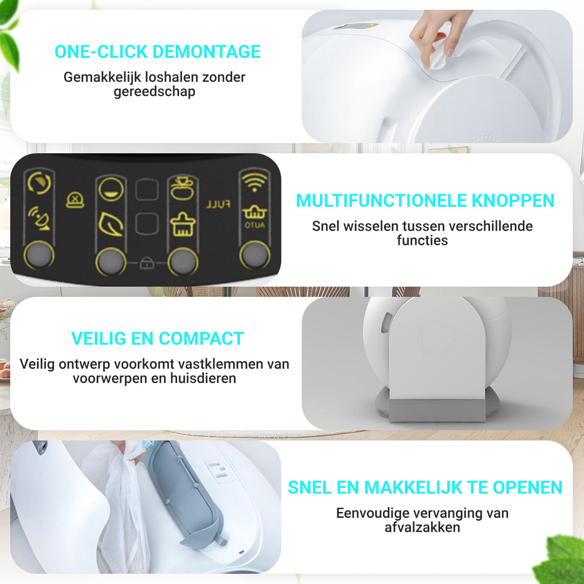 Maak het jezelf én je kat gemakkelijk met deze innovatieve Automatische Kattenbak. Geen nare geurtjes, geen dagelijks onderhoud – alleen het beste voor jouw kat. Bestel vandaag nog en geniet van een schone en frisse leefomgeving!